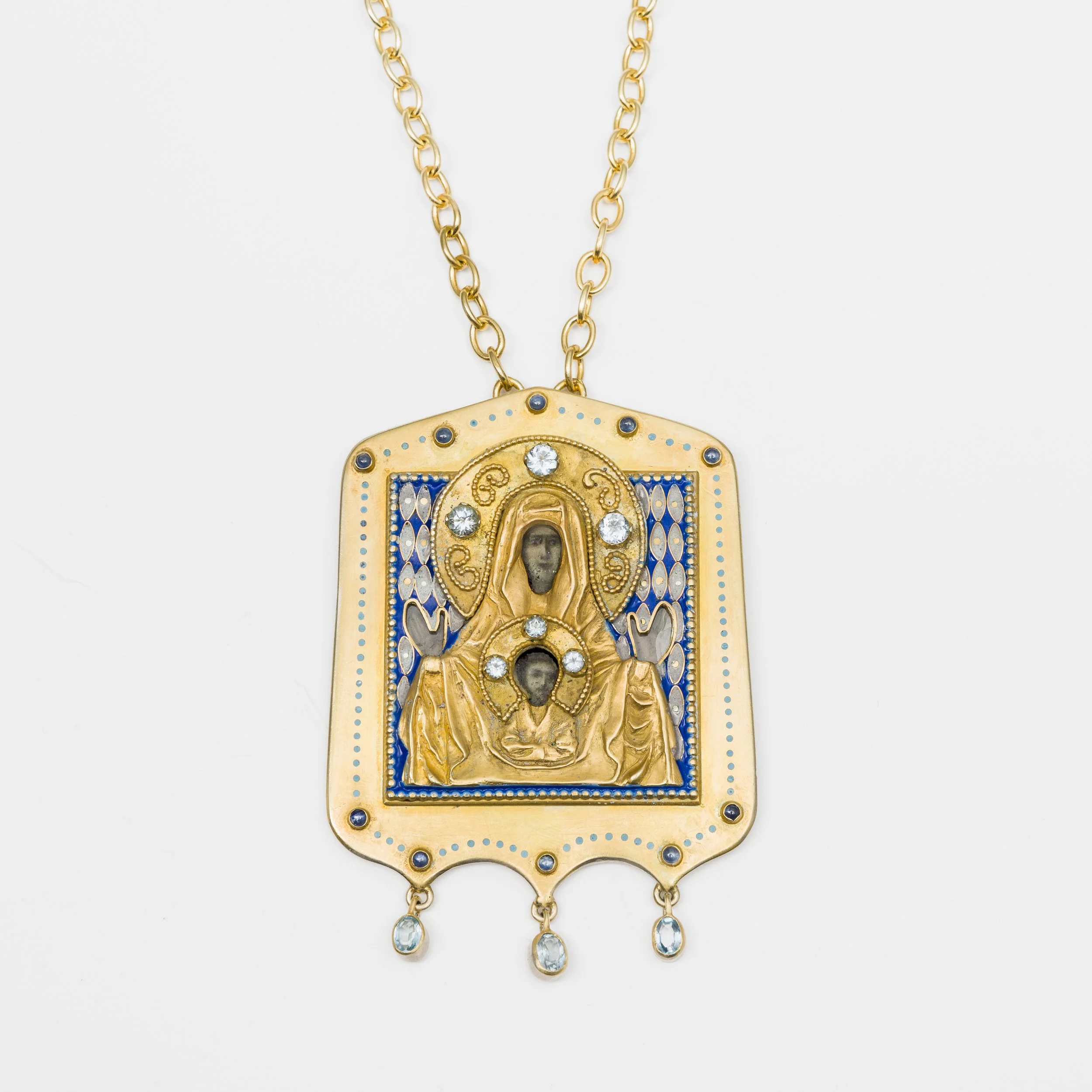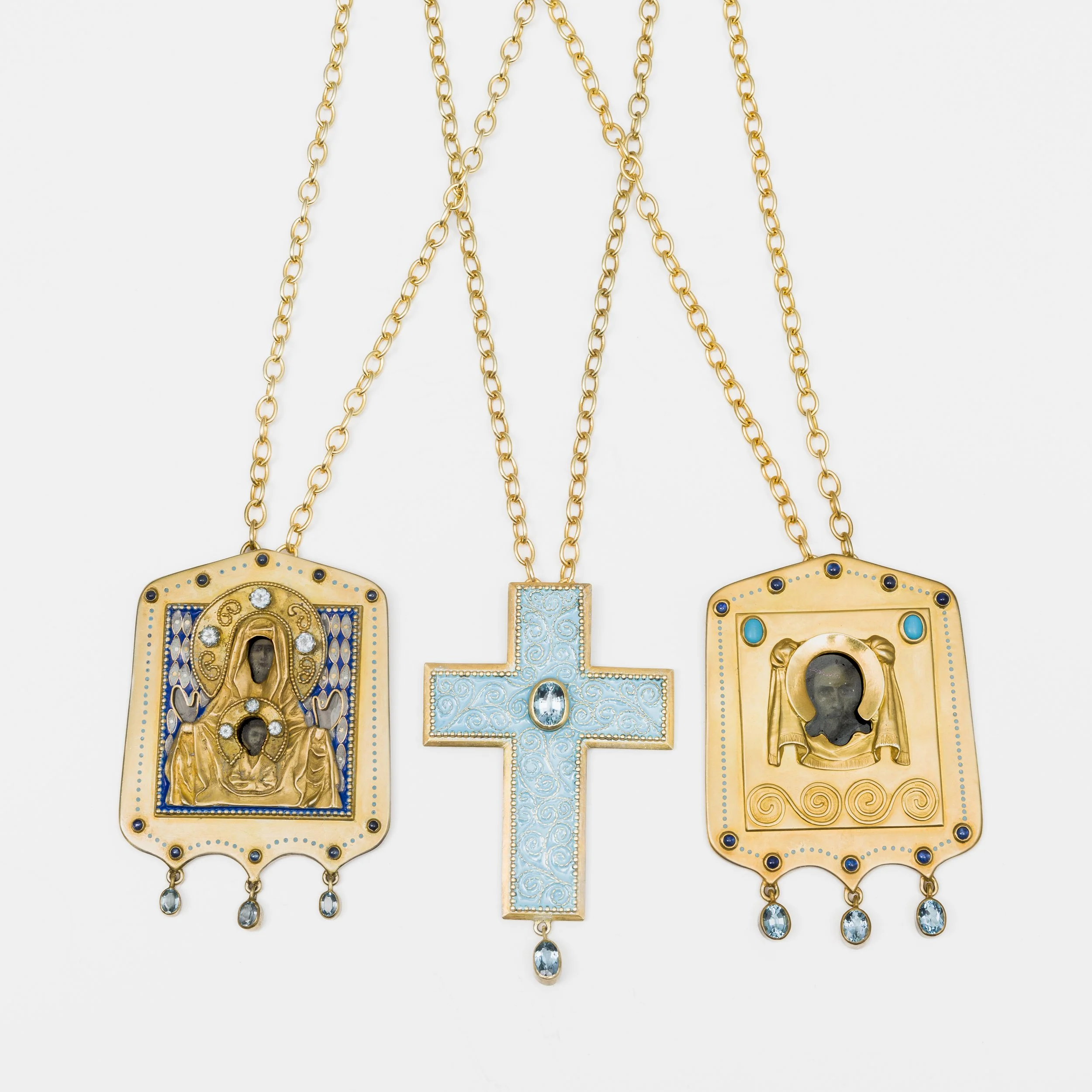 This cross and panagia set, worn by a Bishop during an orthodox mass, was commissioned by the Cathedral of Our Lady of the Sign in 2022 as a gift to Metropolitan Nicholas First Hierarch of the Russian Orthodox Church Outside of Russia on the occasion of his enthronement.